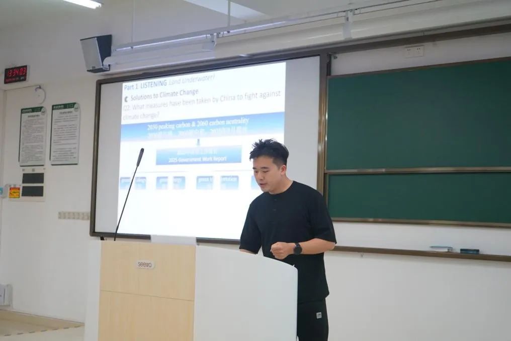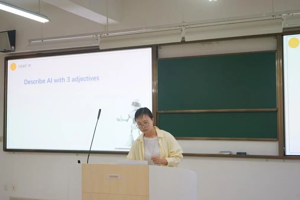 张晏瑀老师在授课中展示了关于人工智能与人类关系的内容,涵盖气候变化的影响、解决方案,以及如何倾听主要观点和细节。张老师通过引导员工批判性思考,强调了AI的积极特性,如有帮助、创新和高效,并探讨了AI可能带来的挑战,为评委呈现了一堂生动的英语综合课。