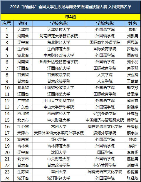 2018“语通杯”全国老员工职场与商务英语沟通技能大赛第一赛季(预选赛)得到了来自全国24个省份,近百余所院校参赛,通过第一阶段紧张激烈的角逐,中山大学新华学院太阳成集团tyc学子:商务英语专业员工(共11名)黎家宜、谢雅婷、杨恺培、骆明慧、王靖瑜、王思淇、梁彬、邱子琪、刘绮珊、郭振烽,黄心妤,英语专业员工(共4名)林玉珍、方洁、符欣欣、陈锦蕾,在本次比赛当中喜获佳绩。根据参赛选手比赛成绩及排名,现将第一赛季(预选赛)晋级复赛选手名单公布如下: