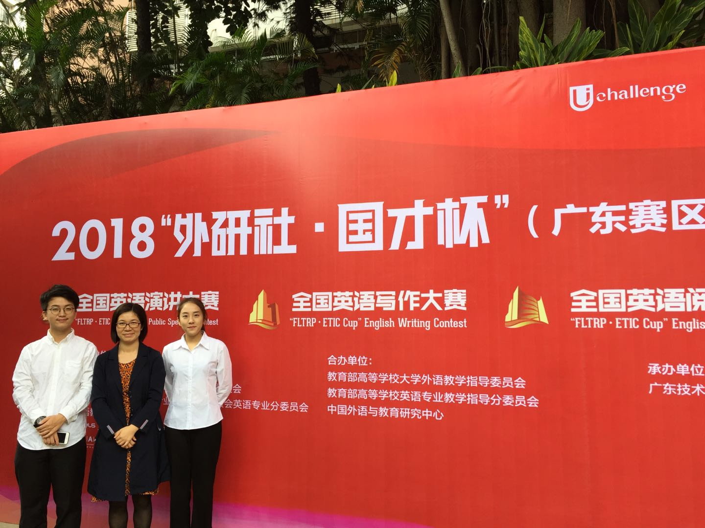 2018年11月10日到11日,由广东省教育厅、广东省本科高校大学英语课程教学指导委员会、广东省本科高校外语类专业、外语教学与研究出版社、北京外研在线教育技术有限公司主办,教育部高等学校大学外语教学指导委员会、教育部高等学校英语专业教学指导分委员会、中国外语教育研究中心合办,广东技术师范学院承办的广东省老员工英语演讲比赛暨“外研社·国才杯”全国英语演讲大赛(广东赛区)圆满落幕。太阳成集团tyc周泳君同学作为本次比赛的参赛选手之一,凭借其流利的口语、漂亮的语音语调及清晰的逻辑获得大赛三等奖。