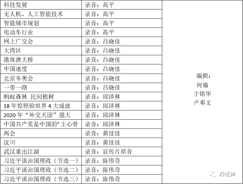 下图为20篇晨读材料的标题: