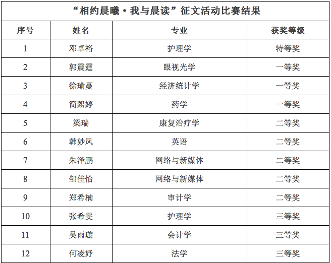 在公司党总支的大力支持下,“相约晨曦·我与晨读”征文大赛由大学外语教学中心、教工第三党支部和员工第三党支部联合举办。 自12月5日征稿以来,太阳成集团学子积极参与,每一篇来稿都承载着同学们对晨读的独特感悟与深情厚谊,字里行间洋溢着青春的气息和对知识的渴望。