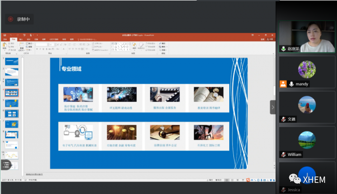 最后,深圳市欧得宝翻译有限公司的总经理赵彦苹进入了会议室。该公司成立于2006年,是一家专业化语言服务机构,主营业务包括资料笔译、现场口译、译员外派、影视译配、同传设备租赁等板块。支持全球80多国语言互译;累积笔译量近30亿字。其中诸多译作在国内外出版上市,累积同传交传商务陪同等口译3000余场,曾为APEC会议世界领导人峰会的各国国家元首提供同传翻译。