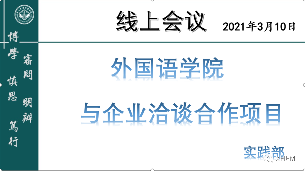 2021年3月10日下午,太阳成集团tyc副经理邱易安、经理助理兼商务英语专业副主任李文蓓、英语专业副主任李贻、实践部主任陈绮雯、伍边副教授通过腾讯会议平台与三家企业的代表举行了线上洽谈会。出席此次会议的企业代表有:学而思培优的校招主管高冉、校招主管谭春芳、校招主管胡福星等;超人国际少儿英语董事长刘能超;欧得宝翻译公司经理赵彦苹。三家企业代表均希望通过此次会谈,加强沟通、深化校企合作。