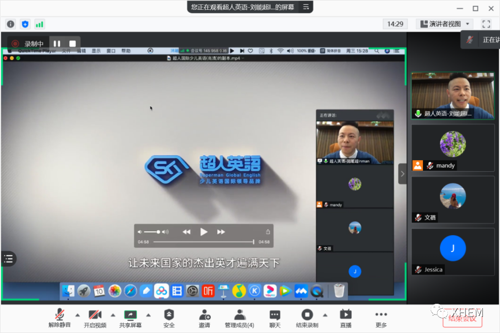 进入会议间的第二家企业是超人国际少儿英语董事长刘能超。刘董首先向我们展示了一段有关公司情况的宣传片。他表示公司立足于深圳,专注于少儿英语教育,在半年的时间内开设了三个校区。刘董介绍目前公司投入大量的资本打造豪华的校区,选用最优秀的教材,选聘来自于海内外优秀的学子为主讲教师,还聘请了外教,并且与英国伦敦圣三一学院达成全面战略合作,为员工提供游学项目,口语的国际认证。公司的业务快速扩张,在不久的将来就会开设第四家校区。因此,对于人才储备有紧迫的需求。