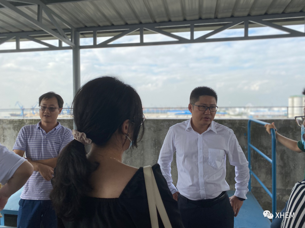 吴漫经理(右一)和赵同吉主任(左一)为师生介绍码头运营