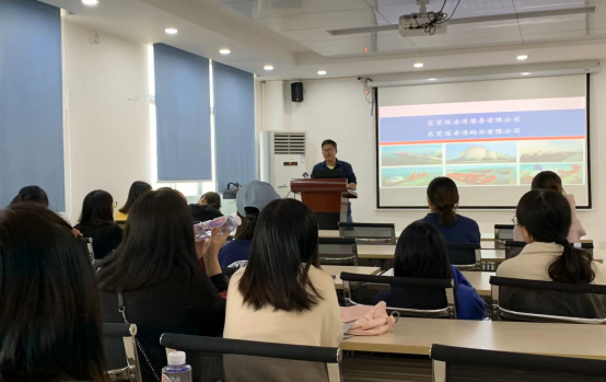 随后,公司师生来到公司六层培训室 ,由吴经理为同学们上一节生动的港口业务课程,全面地介绍了企业的地理优势、项目的建设历程和建设规模,让同学们深刻地了解国际贸易中的相关重要知识。随后,他还为我们分享了东莞深赤湾企业文化中“敬业、专业和卓越”的工作精神。他认为,作为一名老员工,要学会吃苦耐劳、勤劳奋进,认真对待自己的学业,才能变得足够优秀。
