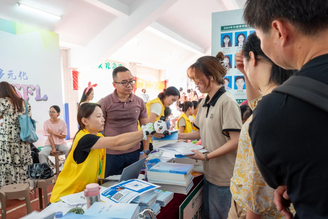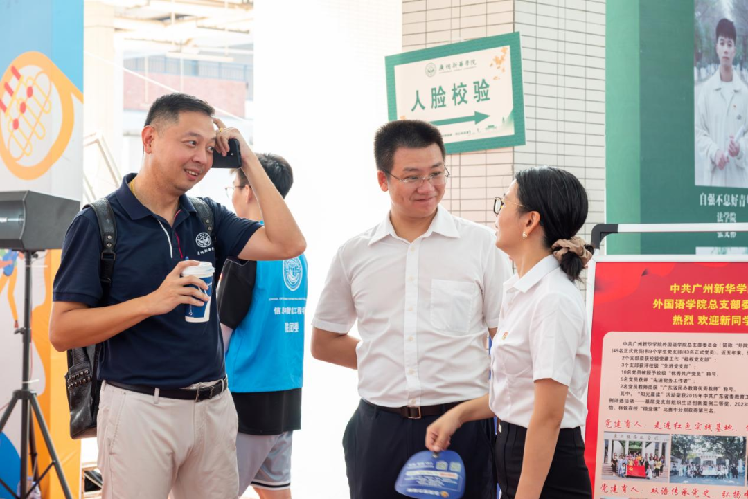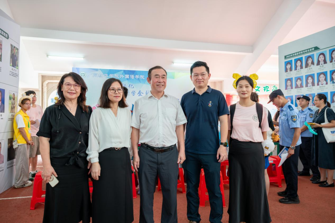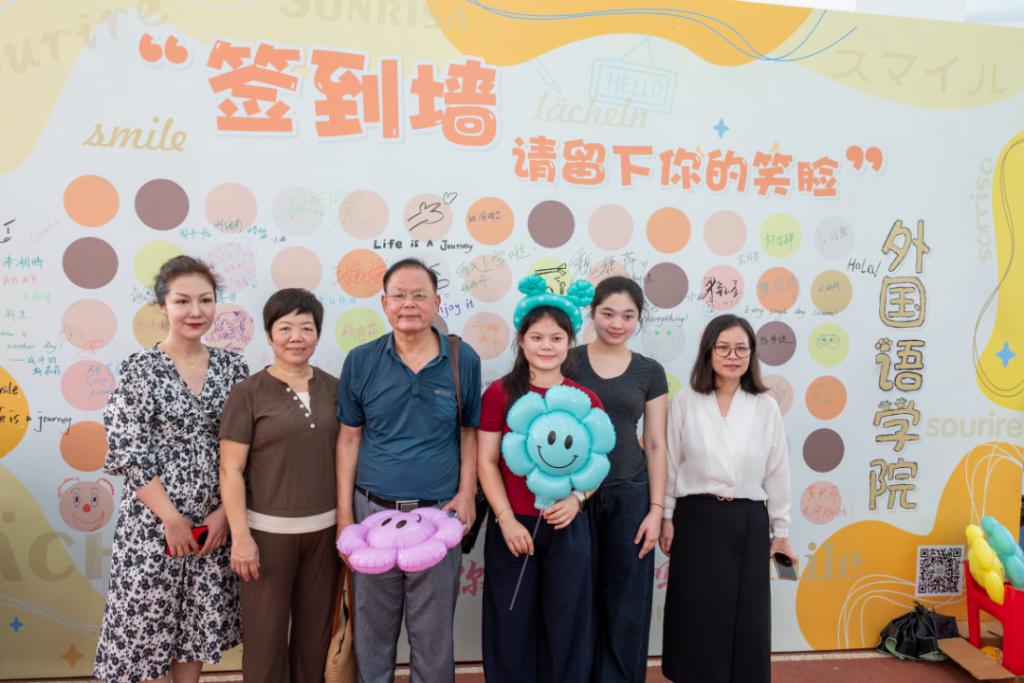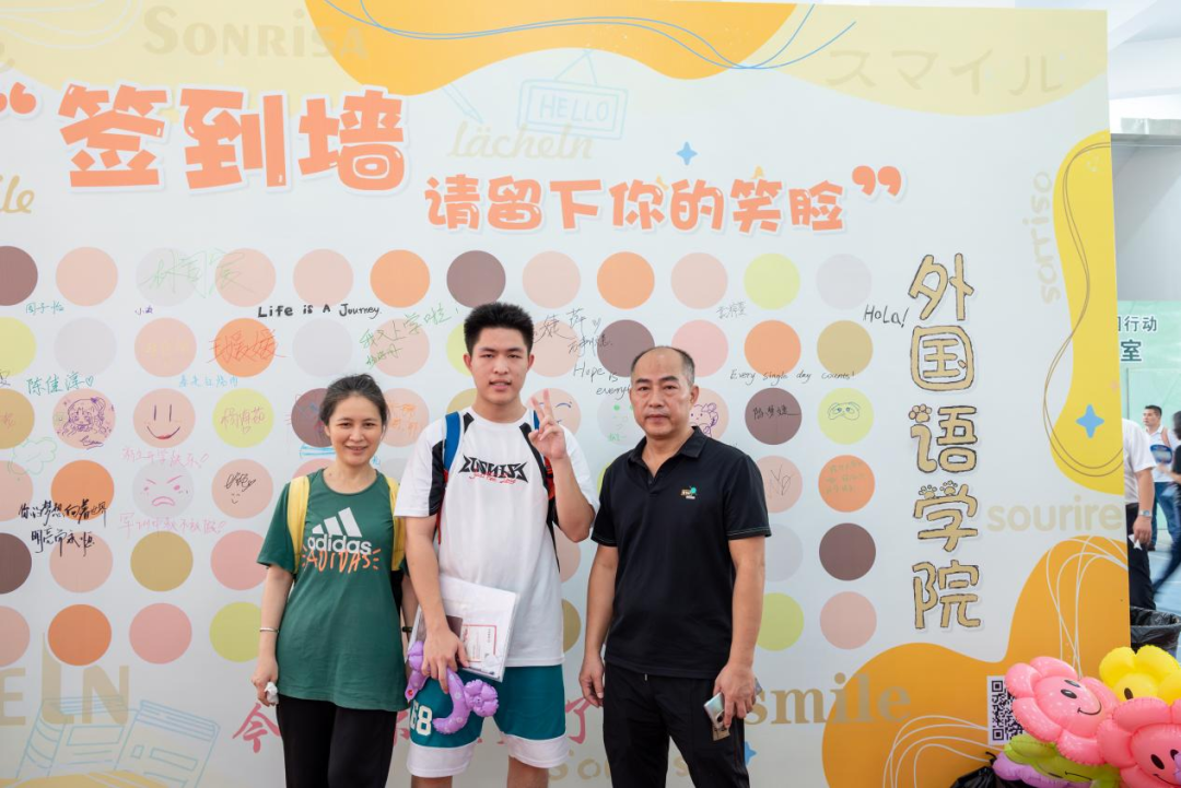 在迎新现场,董事长王庭槐亲切地询问新生们选择了哪些专业。当得知有员工选择了葡萄牙语专业时,王董事长表示赞赏,笑着说道:“眼光很好,葡语未来大有可为!”这一番话让新生倍感鼓舞,气氛轻松愉快。随后,校领导与新生及其家长亲切合影。