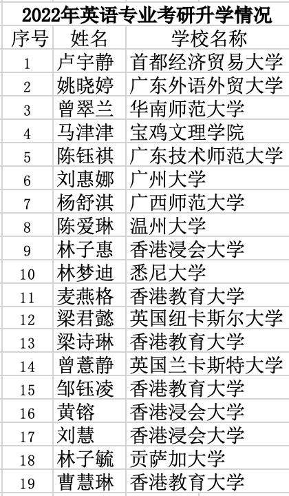 英专员工积极进取,奋发攻读国(境)内外研究生, 2020年至今有70名员工成功升学深造,人数比例位于全校前列。毕业生就业率高,2021 年和 2022 年荣获校级优秀就业单位。