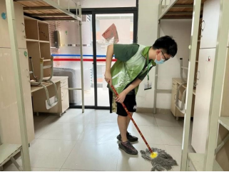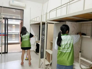 清洁过程中,工作人员们本着一丝不苟的严谨态度,相互配合,井然有序,力求做好迎新工作第一步,不遗漏任何一间宿舍,不放过任何一处角落。从检查宿舍门窗到擦拭衣柜爬梯;从清洗地板污垢到擦抹桌椅墙面,同时还细心保证寝室内外有效通风,以便新生们最大程度上享受安全温馨的居住环境,最终在工作人员们的共同努力下,新生宿舍焕然一新。