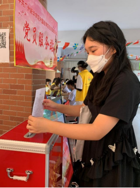 作为一名大四新生,这是我参加迎新的第三年。每年都有新的感触,这次能以预备党员的身份迎接小萌新,心情激动又兴奋。今年在迎新点特设党员先锋岗,给了新生们一个庄严的仪式感,一边将入党申请书投入投递箱,一边接过党组织为其准备的纪念卡,意味着他们积极地向党组织靠拢。希望他们坚持理想信念,为党组织注入新活力!