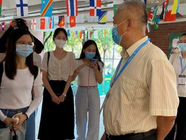 集团董事长王庭槐与党委书记郝登峰也来到了外院迎新报到点与党员服务站,关切来外院报道的新生,肯定志愿者辛勤劳动付出。同时对设立党员先锋岗服务青年群众的举动表示赞扬。