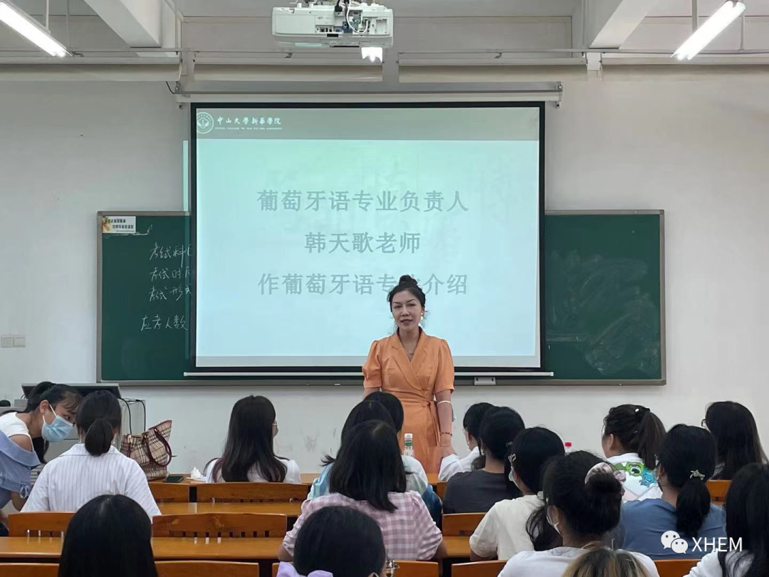 会议伊始,专业负责人韩天歌老师首先给全体新生介绍了葡萄牙语专业建设情况和团队力量,随后针对本专业的人才培养、就业方向等新生关注的问题进行了详细说明。韩老师表示,葡萄牙语专业发展前景广阔,随着中国-巴西经贸往来、粤港澳大湾区建设等经济发展的推动,中国与葡语国家之间的联系日益密切,葡语专业高水平人才深受市场欢迎。韩老师鼓励全体新生认真投入接下来的四年学习,确立清晰的学习目标和发展规划,提升语言水平,成长为全方位的专业人才。