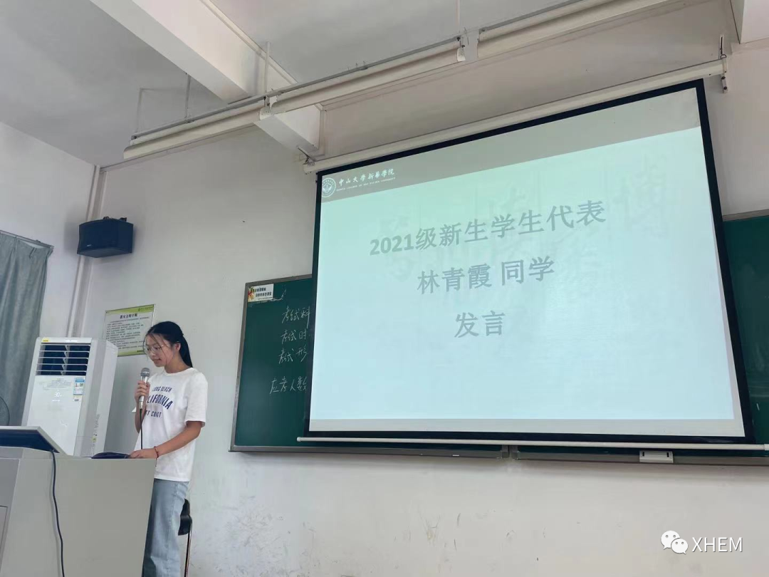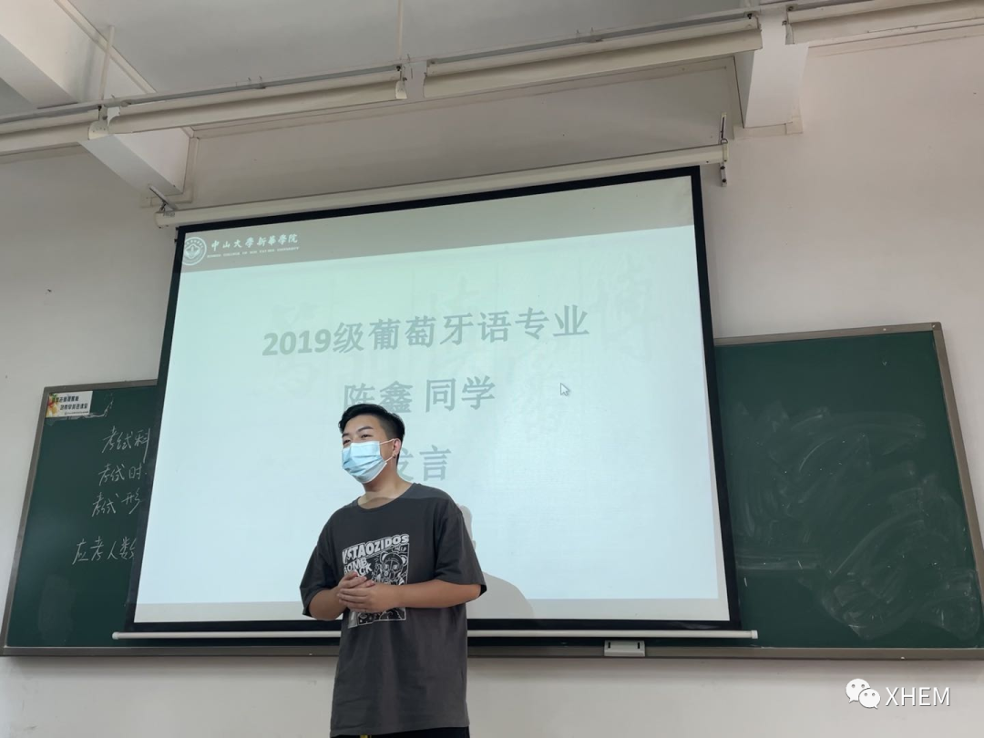 最后,21级新生代表林青霞同学代表全体葡语专业新生上台发言。林同学说道,刚进入老员工活还是有点紧张的,但老师和同学们的帮助和关怀缓解了这种紧张的情绪。她表示将会认真投入大学的学习,明确目标,充实自己。