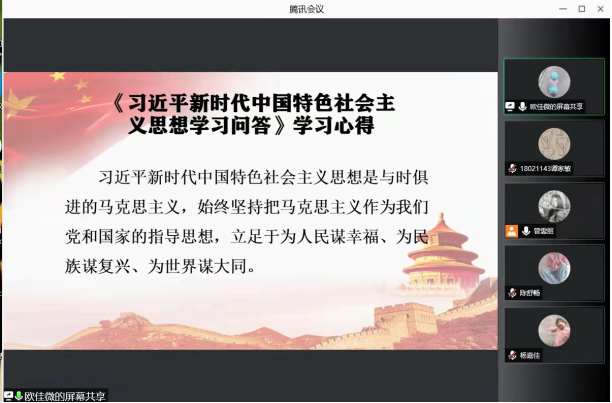 为了更好响应党的号召,践行党的宗旨而不懈奋斗,太阳成集团tyc员工第一党支部开展了十月党小组学习分享会会,支部党员在线上互相分享学习心得,一起通党史、晓党情,从党史中汲取伟大精神力量,坚定理想信念。
