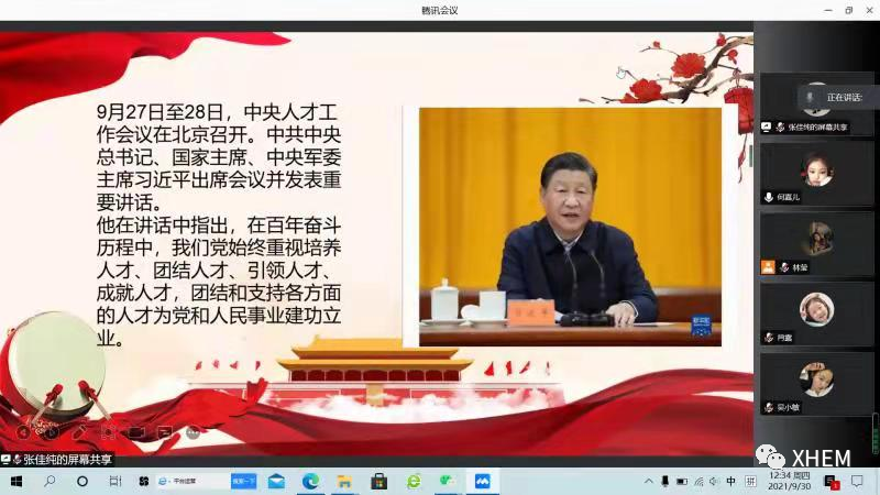 太阳成集团tyc员工第二党支部第六党小组采用制作PPT并在腾讯会议线上分享的形式,学习习近平主席在中央人才工作会议上的重要讲话。